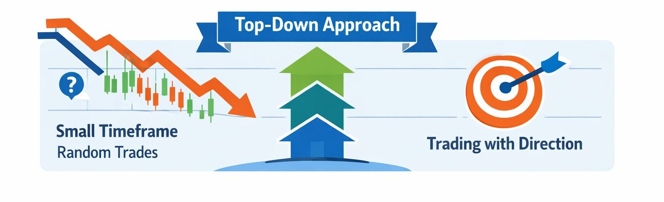 However, without understanding the bigger picture, lower timeframe trading becomes random. You may catch small moves, but you are trading without context. This is where top-down analysis becomes powerful.