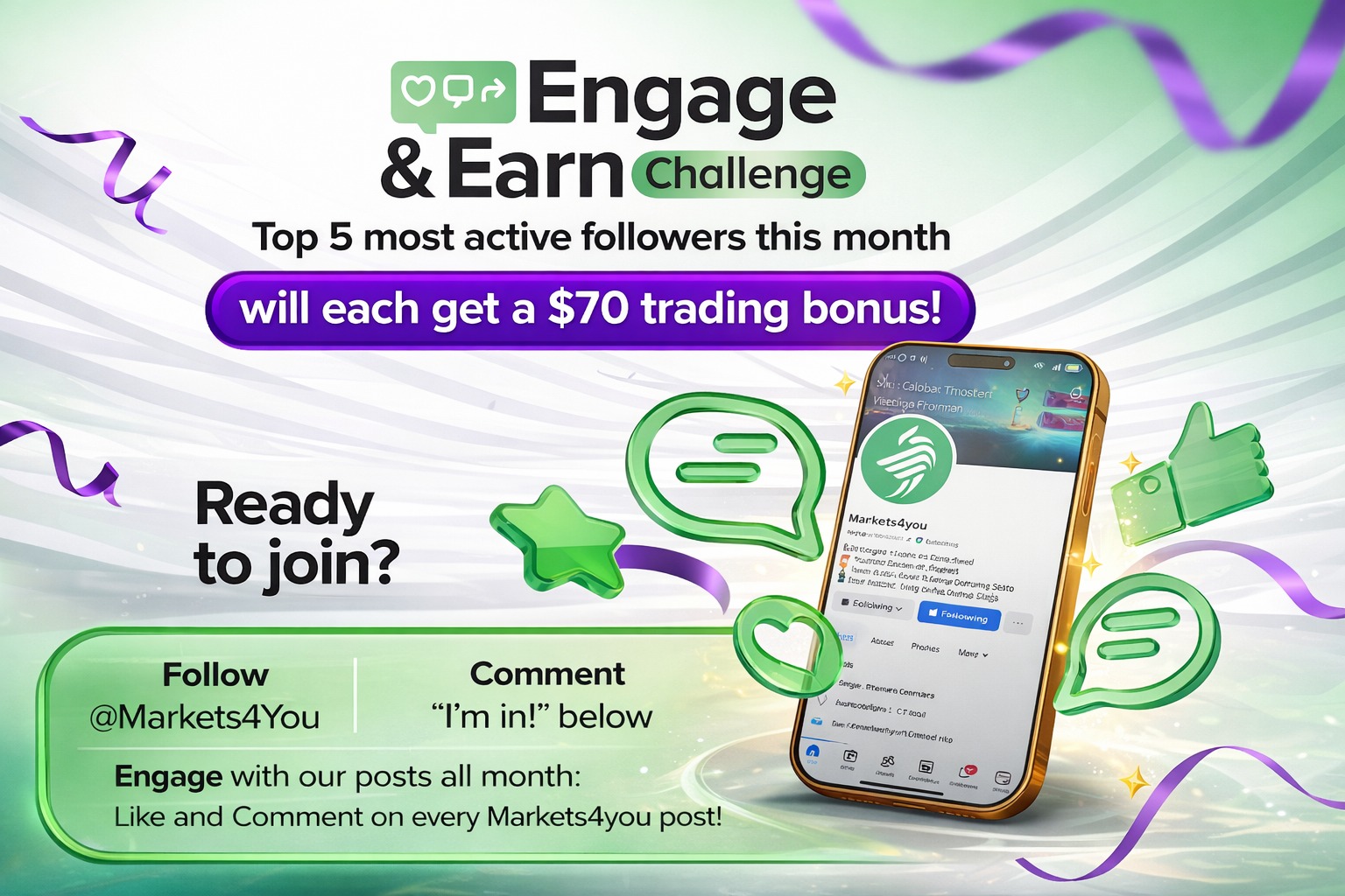 It’s time to engage and get rewarded. Markets4you has launched the exciting Engage & Earn Challenge, giving active followers the opportunity to receive a $70 trading bonus.
