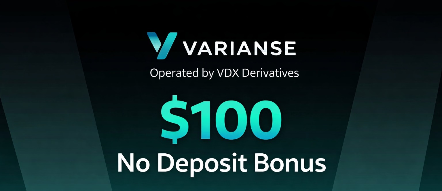 VARIANSE, operated by VDX Derivatives, offers a $100 No Deposit Bonus designed specifically for new traders who want to explore live market conditions without funding their account first.